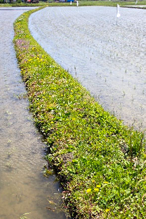 手入れをしたあぜは、春になると多くの草花で彩られる