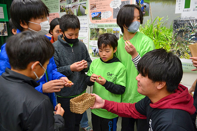 コメ作りを体験したり、田んぼの生き物を観察したりしてきた児童たちは、田んぼが持つ機能や価値に驚いた様子でした。5年生の今西陽介さんは「知らなかったことがたくさんあった」と感心していました。西野さんは「地域の価値に気付き、興味をもってもらえたらうれしい」、伊藤蓮哉さんは「子どもや地域の人に研究成果を伝える大切さを実感した」と話しました。大学生らの熱意が、地域の自然の保護につながればいいなと感じました。