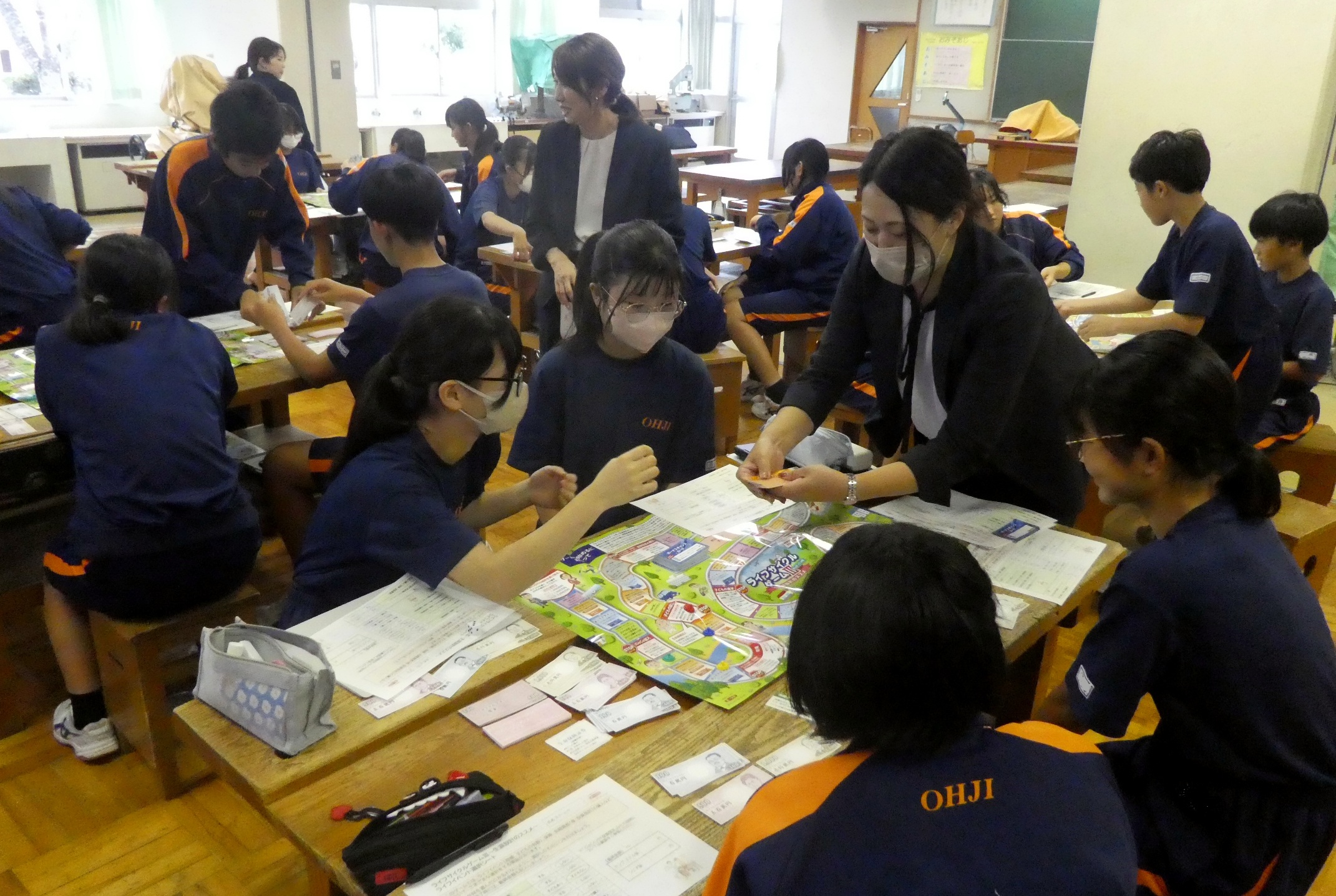 生徒たちがゲームでたどるのは、就職から定年退職までの人生だ。サイコロを振ってマスを進むと、結婚や出産、住宅購入などのライフイベント、思わぬ病気や災害など、人生の様々な決断の場面が用意されている。選択に応じて手持ちの資金が増減することを疑似体験し、ゴール時にたまった金額を競った。