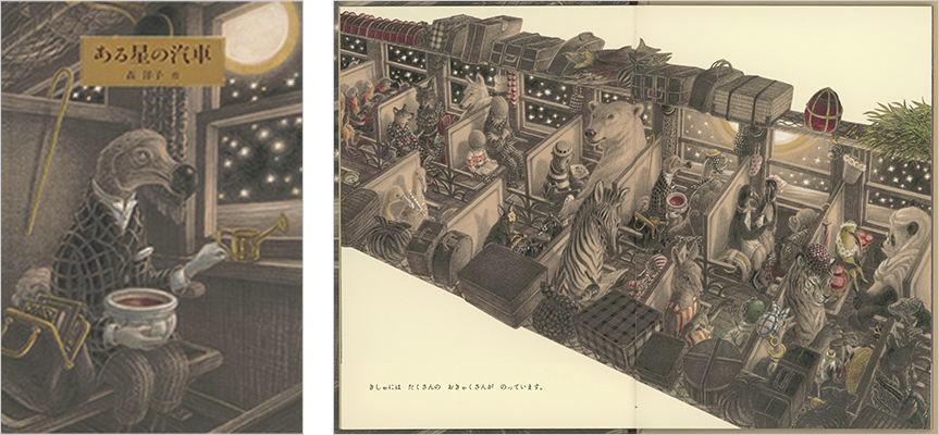 広い大地を走る汽車に、ドードー、リョコウバトたちが乗っています。乗客たちは次々と下車していき......。絶滅動物を描いた創作絵本。