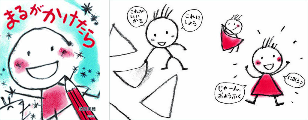 丸を描いて、線を引いたら、棒みたいな人が生まれた。自分が描いた人と会話しながら、絵の世界を広げていく、おえかきの絵本。