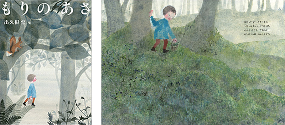 目覚めたばかりの森に出かけた女の子。朝露に鳥の声がひびくみずみずしい朝の中で、密やかな夜の森のことを心に思い浮かべてみます。
