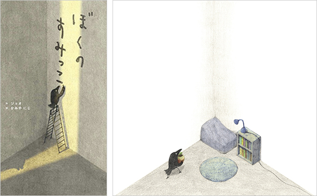 部屋のすみにやってきたカラスの子。自分だけのおちつくすみっこに、すきなものを集めていきます。でも、なにかがたりない......。
