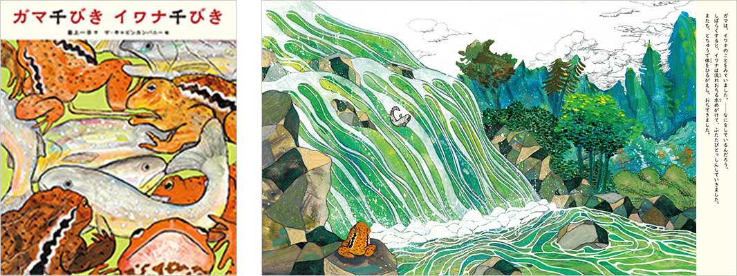 何度も失敗しながらも、ついに滝をのぼったイワナ。最初はばかにしていたガマは、そのひたむきさにいつしか憧れ、自らも......。