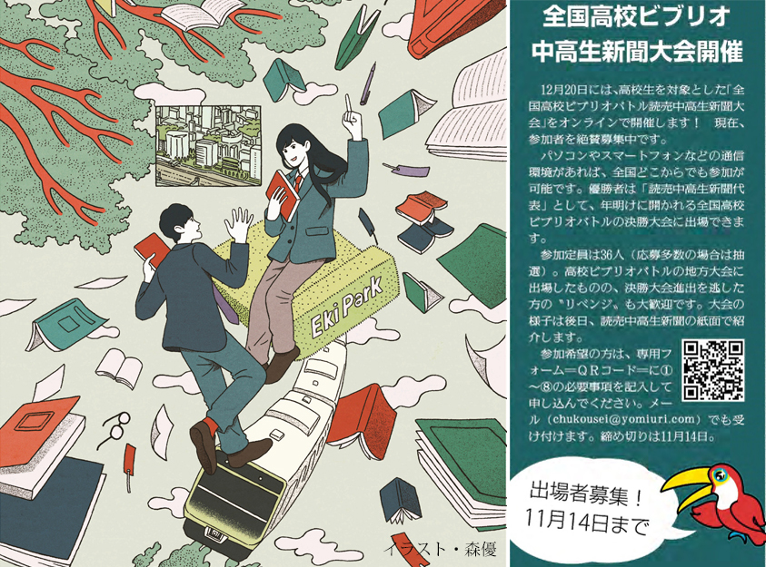 読売中高生新聞では12月20日、オンラインで「全国高校ビブリオバトル読売中高生新聞大会」を開催します。現在出場者を募集中です。