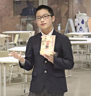 中学生がお気に入りの本の魅力を語り、聴衆の投票で最も読みたくなった本を決める「中学ビブリオバトル京都大会」(龍谷大学図書館主催、活字文化推進会議共催)が12月20日、京都市伏見区の龍谷大深草キャンパスであり、京都市立桃山中2年迫坪槻大さん(14)が優勝した。迫坪さんは来年3月によみうり大手町ホール(東京都千代田区)で開かれる全国大会に出場する。