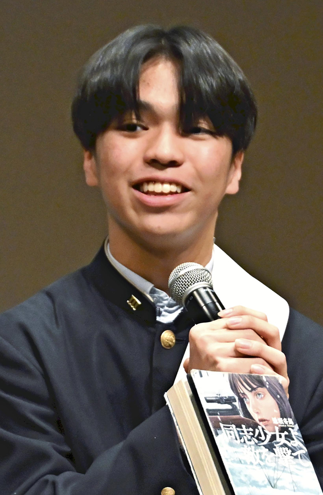 5分間の発表後の質疑応答では、「史実で戦争は学べる。なぜこの本なのか」との質問に、「本は感情移入して疑似体験できる。本を読む意味はそこにある」と小説の魅力を訴えた。