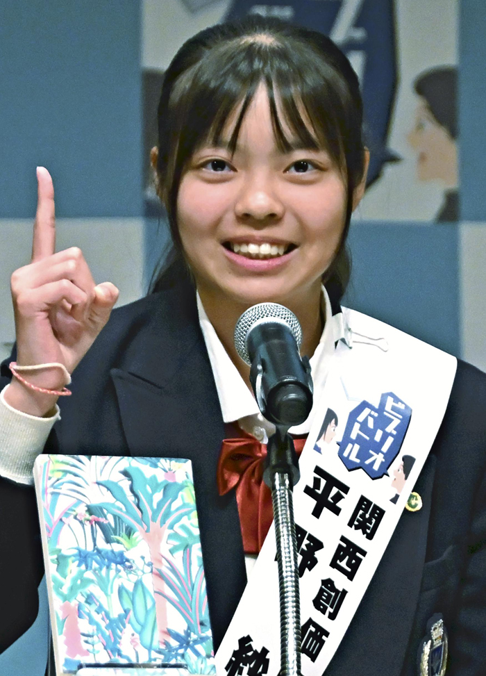 大阪府代表の関西創価中3年、平野紗莉さん(15)は、2年連続の優秀賞となった。今大会で紹介した本は「め生える」(高瀬隼子著、U―NEXT)。髪の毛が全て抜け落ちる感染症が世界中で流行するという設定で、人々が自身の外見に対して抱きがちな劣等感の問題を扱った160ページほどの中編小説だ。