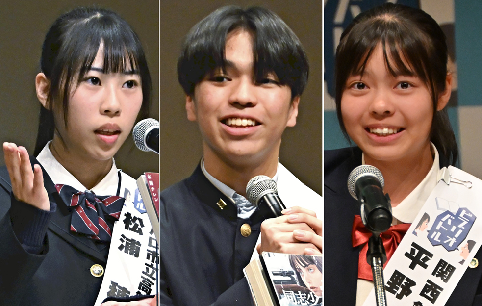松浦穂乙香さん、富田修平さん、平野紗莉さんに優秀賞...全国中学ビブリオバトル