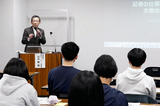 読売新聞教育ネットワーク事務局の込山駿記者による「出前授業」が3月27日、甲府市の山梨県防災新館で行われ、中高生やその保護者11人が、記者の仕事や文章を書く際のコツなどを学んだ。 出前授業は、