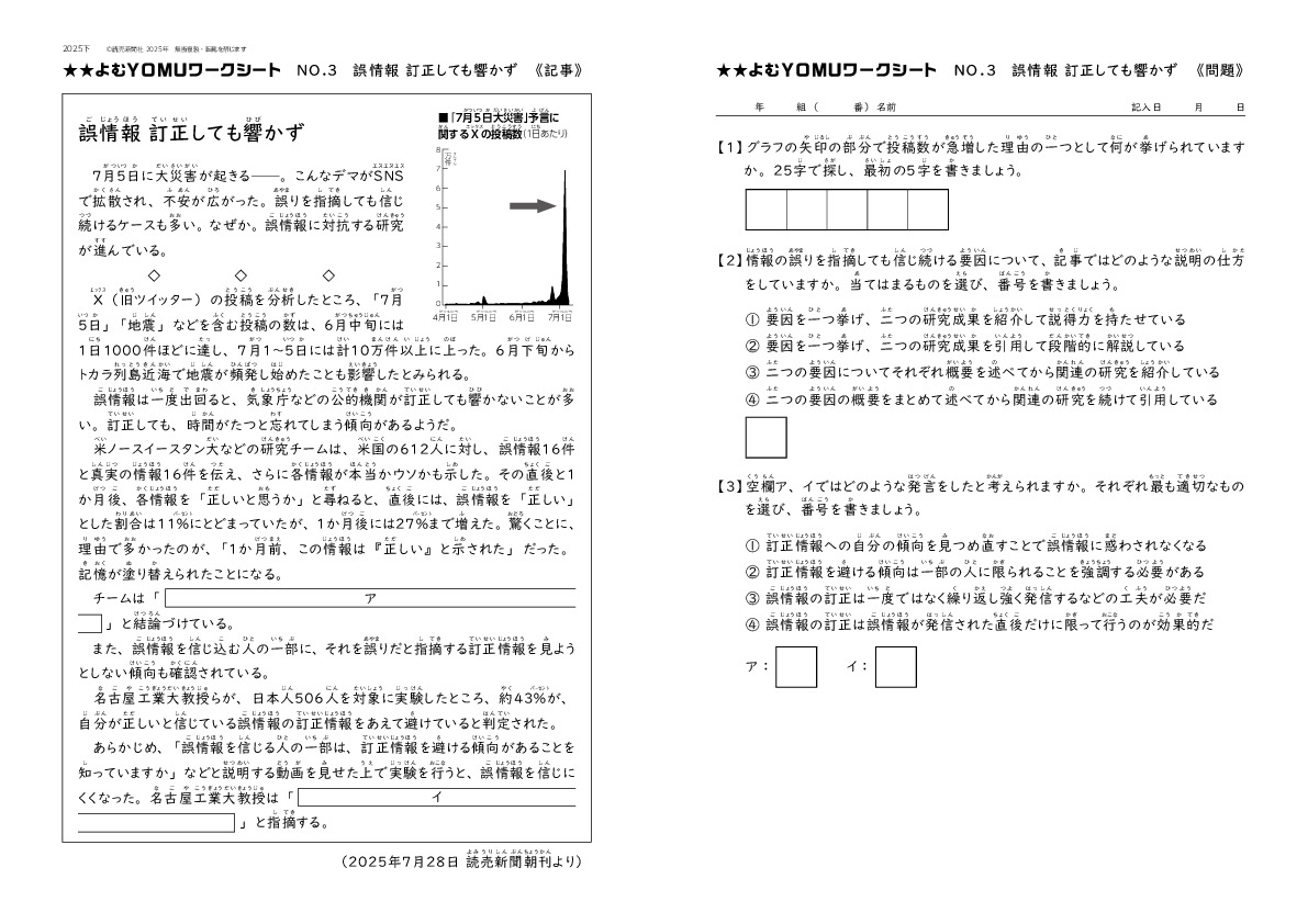 【中学校】全漢字振り仮名付きワークシート(A3サイズ、白黒、解答・解説なし)